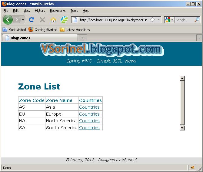 We will pass here the Java code used to create the Zone Spring service (namely ZoneDaoImpl), as an implementation of a user created ineterface (namely ZoneDao):